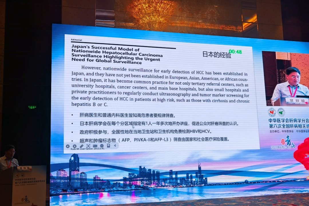 西安交通大学第二附属医院党双锁教授作“从临床实践谈肝癌早期诊断”专题报告,在分享肝癌诊断日本经验中提到的:1.肝病医生和普通内科医生皆知高危患者要规律筛查;2.日本肝病学会在每个分区域指定1人一年多次地开办讲座,促进公众对肝癌筛查的认识;3.政府积极参与,全国性地在当地卫生站和卫生机构免费检测HBV和HCV;4.超声和肿瘤标志物(AFP、DCP和AFP-L3)筛查由国家和社会医疗保险覆盖。