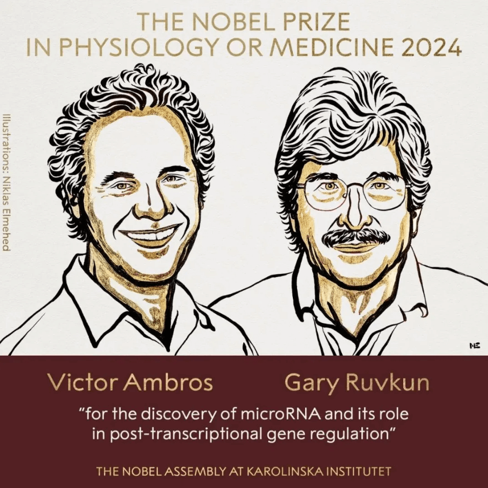 2024年诺贝尔生理学或医学奖再次聚焦基因调控,将今年的诺贝尔生理学或医学奖授予美国科学家 Victor Ambros 和 Gary Ruvkun,以表彰他们在发现微小 RNA(microRNAs、miRNAs)及其在基因调控中的作用方面做出的开创性贡献。miRNAs作为调控基因表达的重要分子,在癌症、神经退行性疾病、心血管疾病等多种病理过程中发挥着关键作用。miRNAs已成为检测疾病进展的理想标志物。