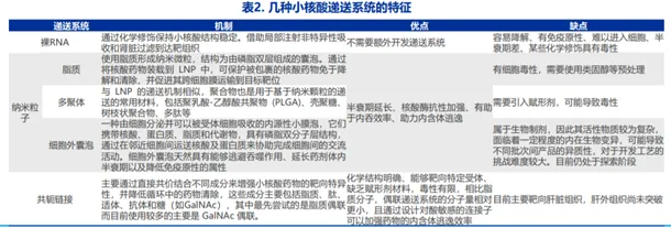 小核酸药物常见递送系统