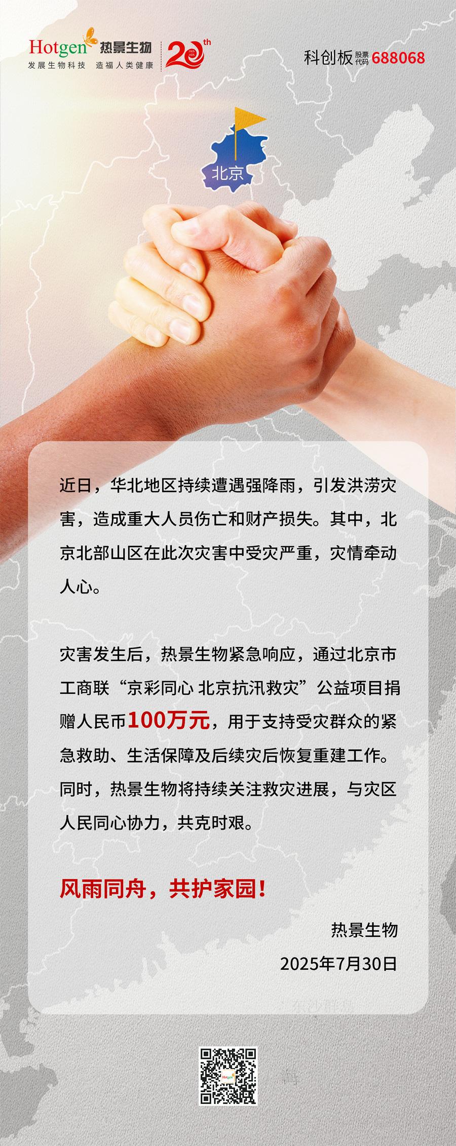 风雨同舟|热景生物捐赠100万元,驰援强降雨救灾工作