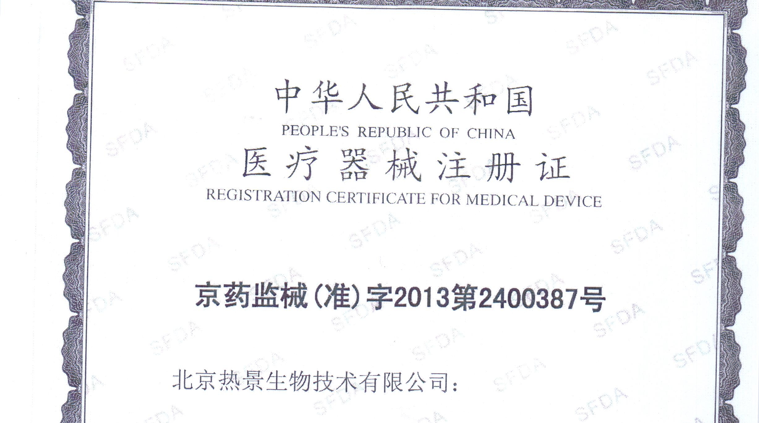 通过多人的共同努力,热景生物心肌脂肪酸结合蛋白定量测定试剂盒(上转发光法)获得医疗器械注册证,注册证号:京药监械(准)字2013第2400387号。
